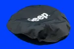 - Description: 'White Jeep logo on Black Denim, Fits P225X75R16 tires'