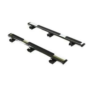 Premium Tubular Side Steps are constructed of lightweight anodized aluminum or powder-coated steel. Tubular Side Steps are mandrel bent to ensure the steps maintain a consistent diameter. Premium Side Steps include molded end caps to accent your vehicles styling. Both Premium and Tubular Side Steps provide wide skid-resistant stepping surfaces for easy vehicle entry and exit. May not be compatible with Front Splash Guards. - Condition: New